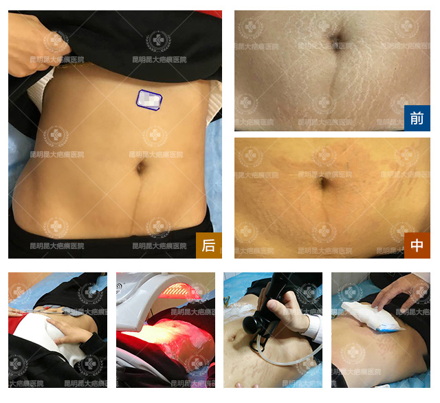 昆明昆大疤痕医院采用PLASMA闪耀离子束祛妊娠纹、宝石之光祛妊娠纹、新辉煌360至尊祛纹系统联合修复妊娠纹,以刺激胶原蛋白、弹性蛋白的合成,重新支撑起之前就被破坏的纤维网,恢复肌肤再生长。